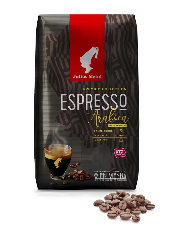 Тщательно отобранные зёрна арабики с лучших плантаций Бразилии и Центральной Америки придают бленду Julius Meinl Espresso Premium Collection свежий вкус